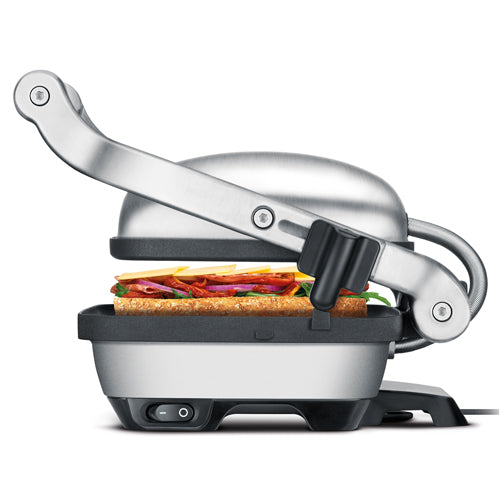 Adjustable height control keeps the top plate at just the right height to melt and brown any size open sandwich you can think to create from lofty croissants to flatbreads.